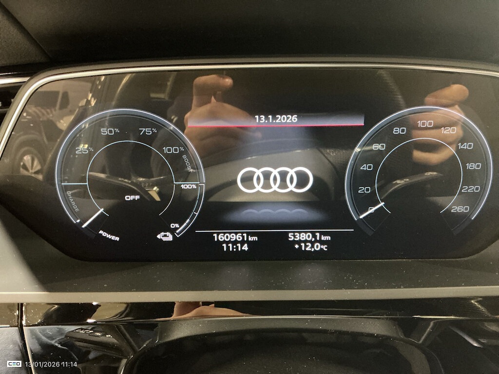 Unutrašnjost E-trona stvara osjećaj prostranosti i premium atmosfere zahvaljujući kvalitetnim materijalima, pažljivo odabranim detaljima i tehnološki naprednim sistemima. Vozač i putnici uživaju u intuitivnom korištenju multimedijalnih funkcija, preglednim ekranima i modernim pomoćnim sistemima koji čine vožnju sigurnijom i ugodnijom.